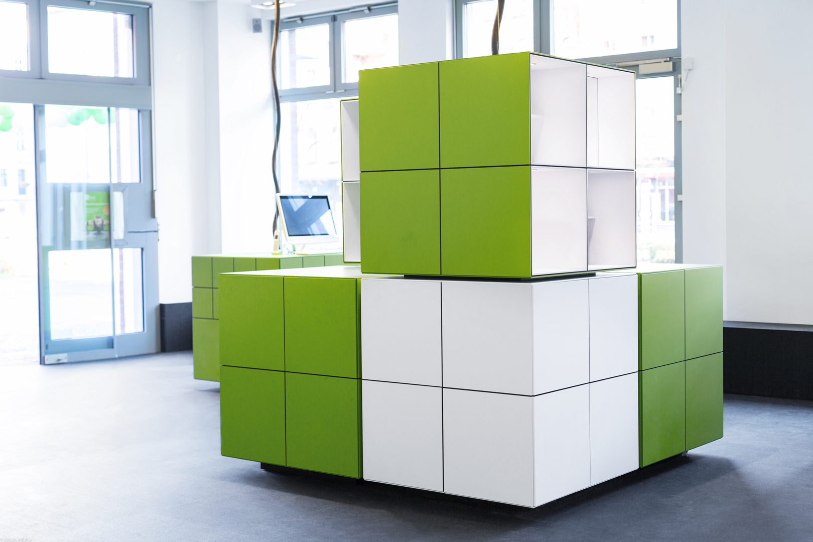 Planung von über 60 Stores in Deutschland und Österreich. Die Grundidee basiert auf einer schwarzen Traingsfläche, die in Analogie zu einer Picknickdecke in jedem neuen Store ausgelegt wird und so das Trainingsumfeld definiert. Darauf wird einem „Picknickkorb“ gleich für die zentralen Funktionen die raumprägende Big Box gesetzt. Ergänzend sind würfelförmige Möbelmodule um diese herum positioniert, welche die übrigen Aufgaben übernehmen.